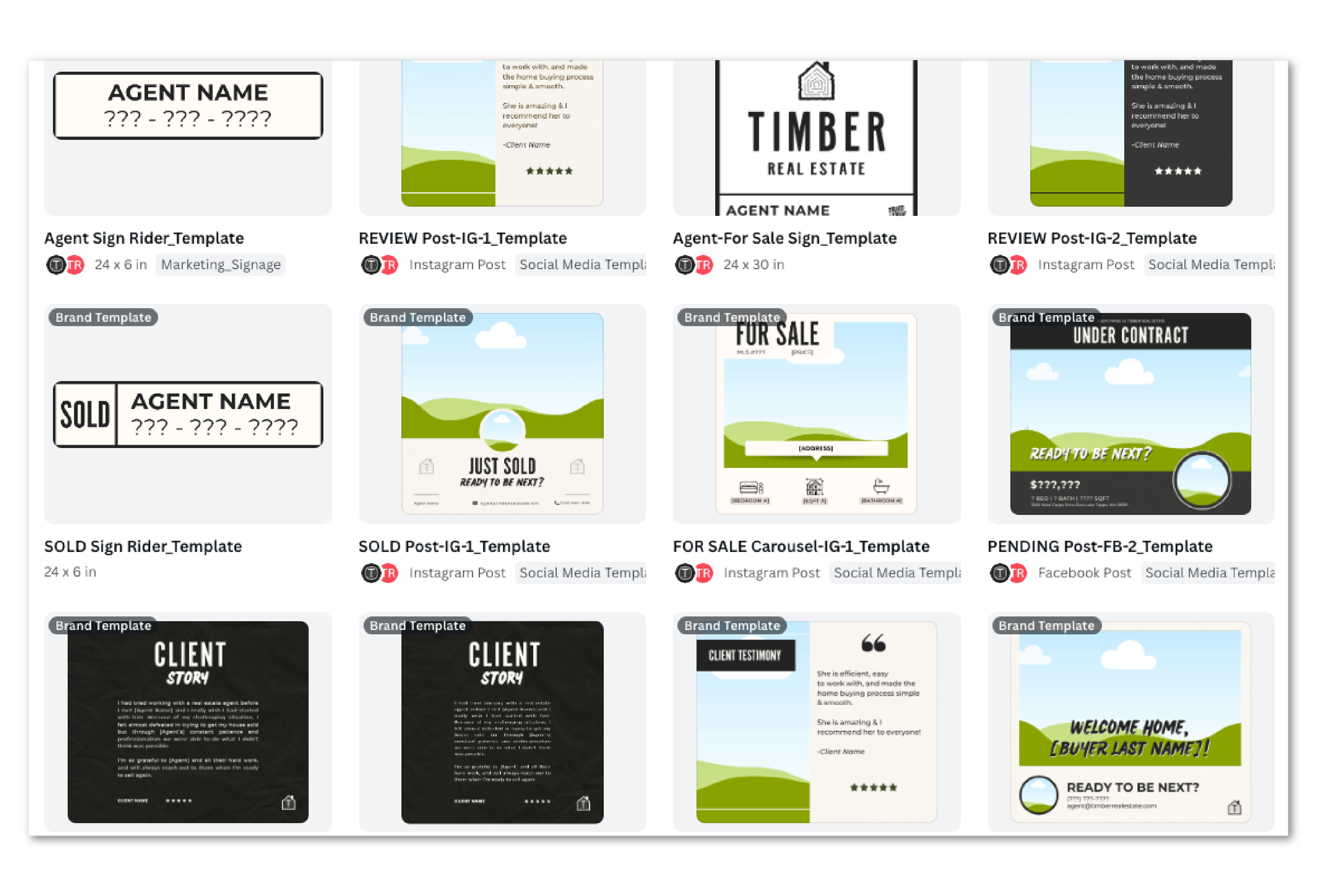 We have a team account with Timber which means that you’ll have access to all of our social media and print design templates as well as all of the Canva Pro account features.